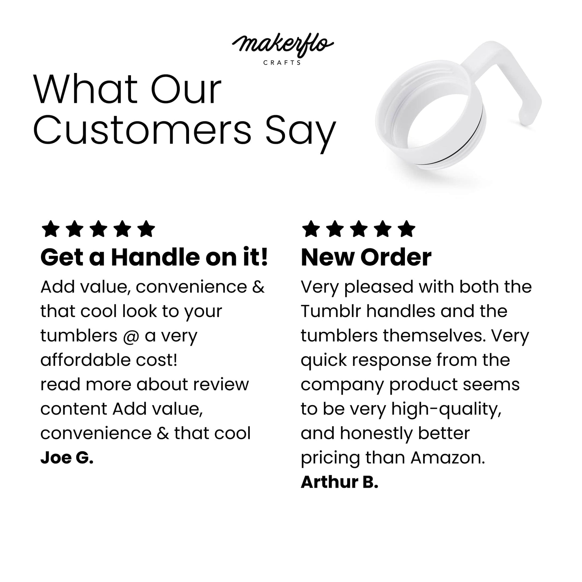 The 30/40oz Tumbler Handle is only compatible with the MakerFlo Tumblers listed below. They will not fit tumblers by other manufacturers.